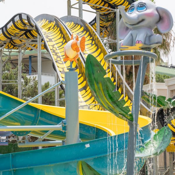 На разположение на гостите на хотела е аквапарк, който разполага с 2 басейна, 7 водни пързалки за възрастни, 5 водни пързалки за деца, центрофуга и водни съоръжения за най-малките.