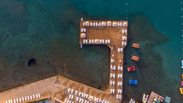 Собствен, пясъчен, платформа. Чадъри, шезлонги и плажни кърпи на плажа и при басейна – безплатно.
