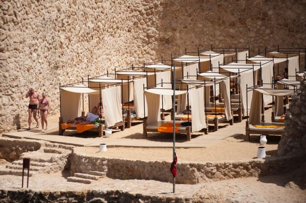Собствен, коралов. Чадъри и шезлонги на плажа и при басейна - безплатно. Плажни кърпи - безплатно.