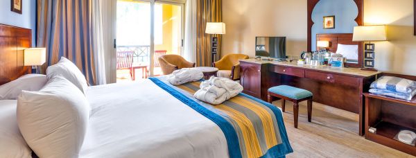 Хотелът разполага с общо 607 стаи, разположени в комплекс от двуетажни и триетажни сгради, от които 290 Garden View Rooms (градина 35 m2),100 Pool View Rooms (гледка басейн 35 м2), 184 Sea View Rooms (гледка море 35 м2) 33 Junior Suite (56m2). Всички стаи са оборудвани с климатик, телевизор, телефон, баня с душ, сешоар, минибар (платен), сет за чай/кафе, сейф, Wi-fi (срещу заплащане), балкон. Почистване на стаите и смяна на кърпи - всеки ден, смяна на спално бельо - 2 пъти седмично.