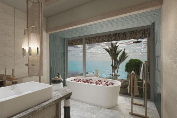Вила с една спалня (230 кв.м), с легло king size, разтегателен диван, отделна всекидневна, мини хладилник, безплатен Wi-Fi, машина за кафе/чай и изглед към океана; максимален капацитет – 3 гости.