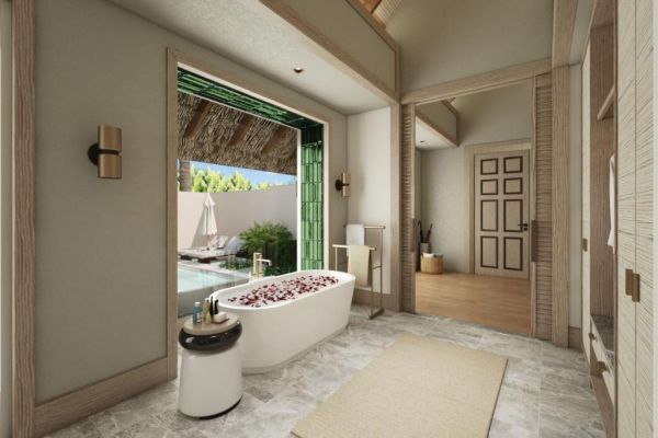 С площ от 209 кв.м, Family Beach Pool Villa е идеална за семейства, с основна спалня, кът с двуетажно легло за деца, частен басейн и директен достъп до плажа, съчетавайки лукс, комфорт и островен чар за перфектна семейна почивка на Малдивите.