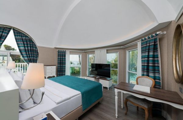 Стаи Main Building: Deluxe room (30 - 32 м2), Deluxe pool room (30 - 32 м2), Superior room (35 м2), Junior Suite room (1 спалня, 1 баня - 40 м2 ) Superior suite room (2 спални, 1 баня - 57 м2), Villa suite room (2 спални, 2 бани ( В деня на пристигане се предоставят плато с плодове и вино) - 62 м2), King suite room (2 спални, 2 бани + външно джакузи, мека бел, чадър и шезлонги (В деня на пристигане се предоставят плато с плодове и вино) – 64 - 80 м2)
