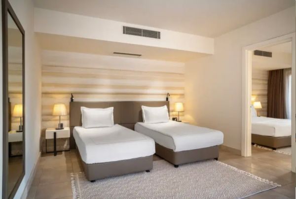 Хотелът разполага с общо 248 стаи с гледка градина или море и се състои от основна сграда и анекс сграда - Family Room Sea View (35-40 m² две помещения със спалня и отделни легла, сврързваща врата между помещенията; една баня с тоалетна; в основната сграда и анекс сграда към хотела), Standard Room (25-30 m² с вътрешен изглед са разположени в основната сграда, а с морски изглед и в анекс сградата на хотела), Handicapped room (30 m² разположени в основната сграда на приземен етаж), Select Superior Room (28 m² разположени в анекс сградата), Suite (45 m²).
