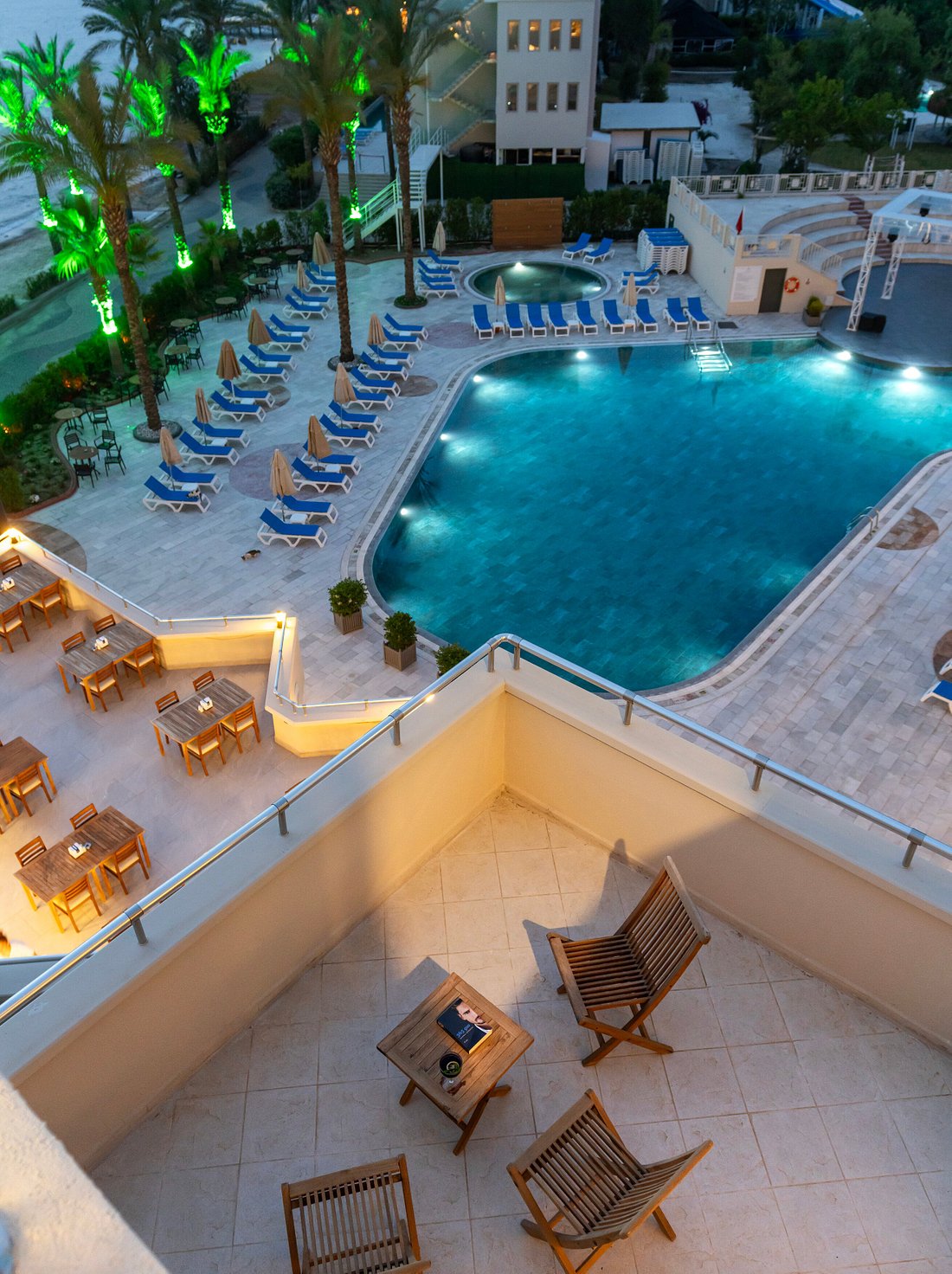 Основен ресторант Island, снек ресторант, три а-ла-карт ресторанта (турски Saltanat и рибен Chipura с предварителна резервация, един път безплатно за престой от 7 нощувки, както и снек ресторант с фастфуд и международна кухня; *А-ла-карт ресторантите работят няколко дни през седмицата и с предварителна резервация*), три бара (Lobby Bar, 24/7 Pool Bar и Starlight Sky Bar), сладкарница, три открити и един закрит басейн, СПА център, дискотека, кино, конферентна зала, ТВ зала, паркинг.