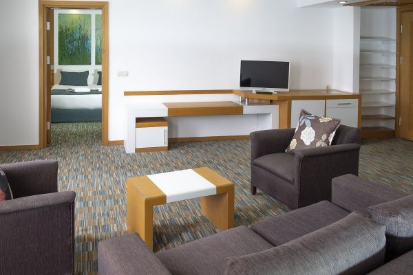 Хотелът разполага с 329 стаи, от които 62 стандартни стаи с изглед градина в основната сграда без балкон (25 -30 кв.м), 136 стандартни стаи с изглед море в основната сграда без балкон (25-30 кв.м), 64 клубни стандартни стаи в анекс сграда с балкон (35 кв.м), 5 суита в основната сграда без балкон (55 кв.м). Всички стаи са оборудвани с климатик, телевизор, телефон, баня с душ, сешоар, минибар, сейф (безплатен). Почистване на стаята и смяна на кърпите - всеки ден, смяна на спалното бельо - 3 пъти в седмицата.