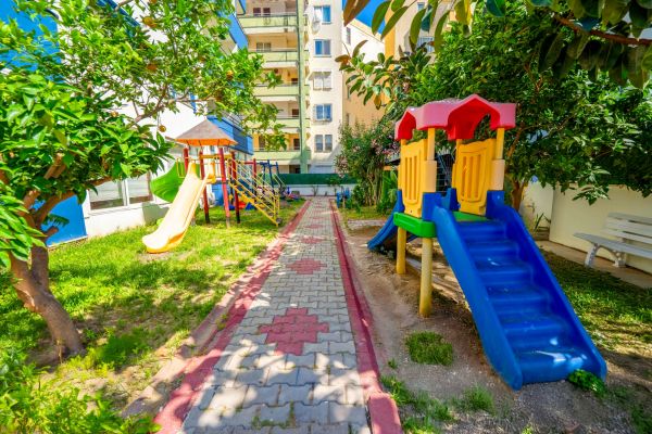 Намира се на 130 км от летище Анталия, на 140 км от центъра на Анталия, на 12 км от центъра на Алания, на 30 м от брега на морето. Построен 2002 г., на обща площ от 3 800 м2.