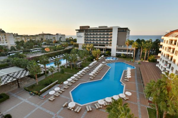 Намира се на 120 км. от летище Анталия, на 14 км. от центъра на Алания, в селището Конаклъ, на 100 м. от брега на морето.