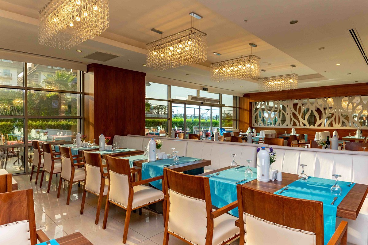 Основен ресторант, 2 а-ла-карт ресторанта (рибен, турски – 1 безплатно посещение на 1 от ресторантите при минимум 7 нощувки, с предварителна резервация), снек ресторант, сладкарница, 5 бара, 2 открити и 1 закрит басейн, 3 водни пързалки, СПА център, магазини.