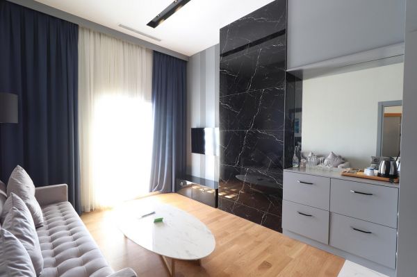 Стаи Club Room Land View (спалня, баня, изглед суша,на 2-та сграда - 22 м²), Club Room Sea View (спалня, баня, изглед море, на 2-та сграда - 22 м²), Superior Room Sea View (1 спалня, хол, 1 баня, на 2-та сграда - 91 м²), Deluxe Room Garden View (спалня, баня, изглед суша, в основната сграда - 25м²), Deluxe Room Sea View (спалня, баня, изглед море, в основната сграда - 25м²), Deluxe Suite (спалня, хол, баня - 56 м²).
