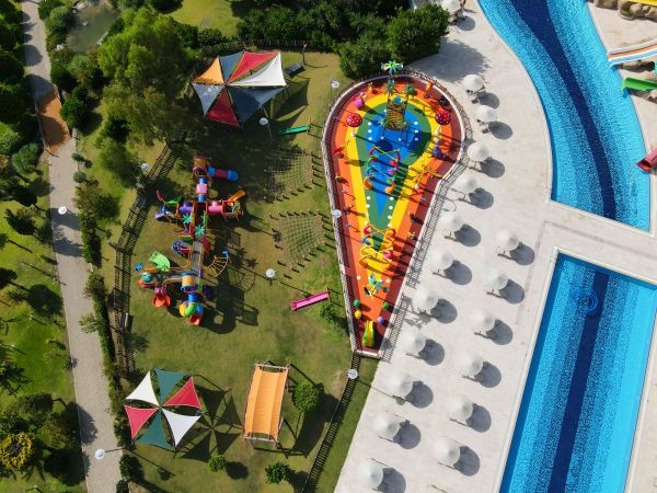Основен ресторант, 5 а-ла-карт ресторанта (рибен, турски, италиански, азиатски, мексикански - 1 безплатно посещение на 1 от ресторантите при минимум 7 нощувки), сладкарница, 6 бара, 3 открити и 1 закрит басейн, аквапарк, амфитеатър, СПА център, дискотека, магазини, конферентни зали, паркинг.