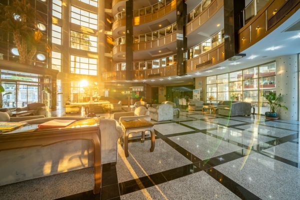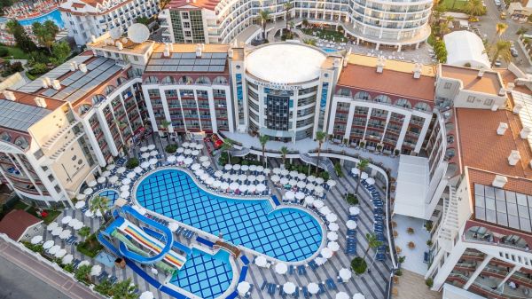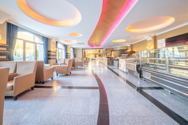 Основен ресторант, 1 а-ла-карт ресторант, 3 бара, открит басейн, закрит басейн (отопляем в началото и в края на сезона), детски басейн, 3 водни пързалки, СПА център, , дискотека, лека анимация, магазини, конферентни зали.