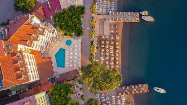 Хотелът се намира на 140 км. от летище Милас, на 110 км от летище Даламан, на 6 км. от центъра на Мармарис, в района на Ичмелер, на брега на морето. Построен през 1985 г., частично реновиран през 2021 г. Хотелът е с концепция само за възрастни (Adults Only 14+).