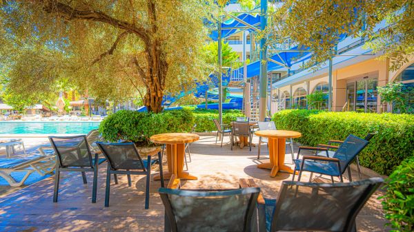 Основен ресторант, бар на басейна, открит басейн, водна пързалка, Спа център, паркинг.