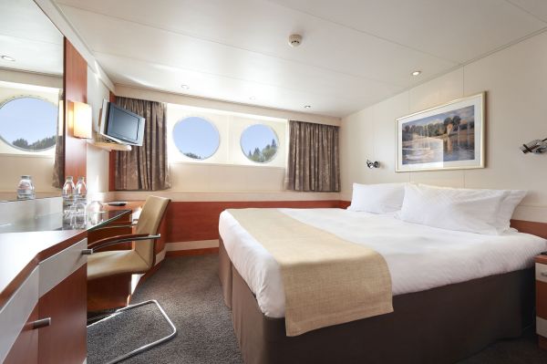 Каютите на основна палуба са с илюминатори, а каютите на средна и горна палуба са с големи френски прозорци. Площта на кабините е около 14 кв. м. Всички каюти имат индивидуален климатик, сателитна ТВ, сешоар, баня и тоалетна.