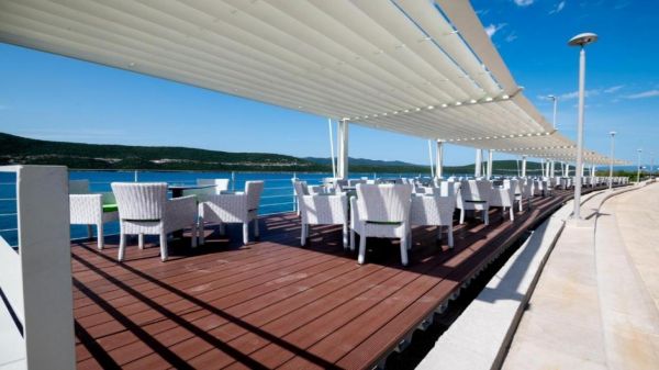 Тераса с прекрасна гледка към морето, където гостите могат да се насладят на напитки или просто да релаксират.