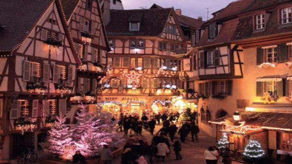 Еднодневна екскурзия "Колмар и пътят на виното". Отпътуване за Колмар - "малката Венеция на Франция". Разходка из тесните улички, осветени от празнични светлини, и цветните къщи с традиционна елзаска архитектура-Къщата с главите, къщата Пфистер, църквата Сен Мартен, каналите на р.Лаух са само част от пешеходната ни разходка в бижуто на Елзас- приказния Колмар.