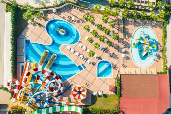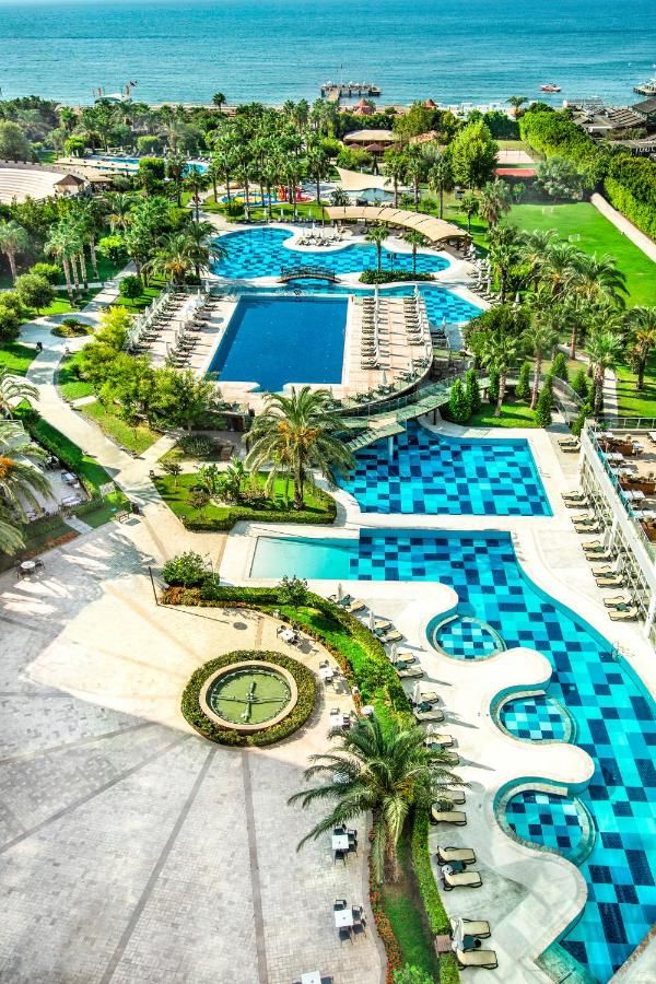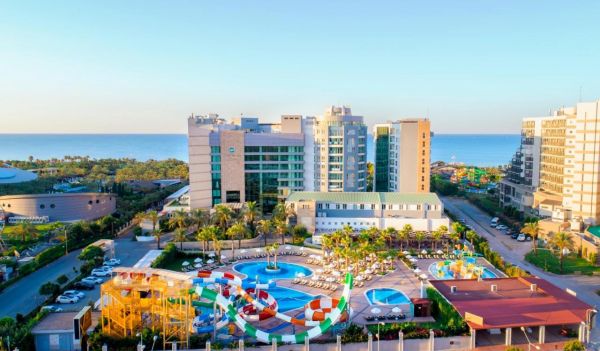 Хотелът се намира на брега на морето, в района на Лара, на 12 км. от центъра и 10 км. от летището на Анталия. Построен е през 2005г. и е последно реновиран 2019-2020г. с обща площ от 33 000 кв.м.
