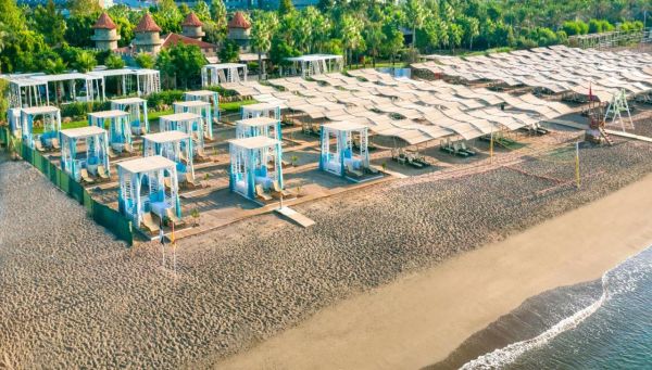 Плаж: пясъчен. Шезлонги, хавлии и чадъри при басейна и плажа - безплатно.