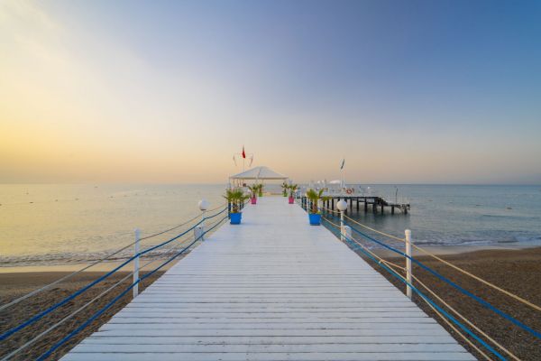 Собствен пясъчен плаж. Има кей. Бар на плажа: безплатно. На плажа и при басейна: чадъри, шезлонги, матраци – безплатно. Плажни кърпи: безплатно. Шатри на плажа – срещу заплащане.