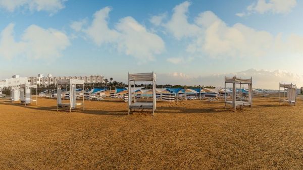 Собствен пясъчен плаж със залив и 3 плувни басейна, включително 1 за деца с чадъри, шезлонги с матраци, плажни огради за защита от вятъра, обслужване от бара, спасители на басейна и на плажа, кърпи за плажа и басейна, табели около басейна;
