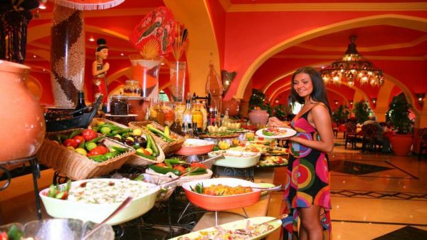 В Domina Coral Bay има 3 ресторанта, които сервират местни и международни ястия. Вечер гостите могат да си поръчат вкусен коктейл в някой от 12-те бара на комплекса. Допълнително хотелът разполага с 8 а-ла-карт ресторанта.