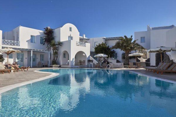 Хотелът се намира на 500 м. от центъра на столицата Фира, на 12 км. от Камари, на 14 км. от Периса, на 7 км. от брега на морето. Луксозен хотел, построен в изцяло традиционен цикладски стил. Комплекс El Greco Resort, прилича на малко селище с бели къщи. Разположен е на голяма територия и е идеален избор за луксозна семейна почивка. Автобусна спирка на 450 м. от хотела.